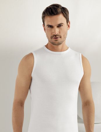 Şahinler Sıfır Kollu Bisiklet Yaka Ribana Atlet Beyaz ME024